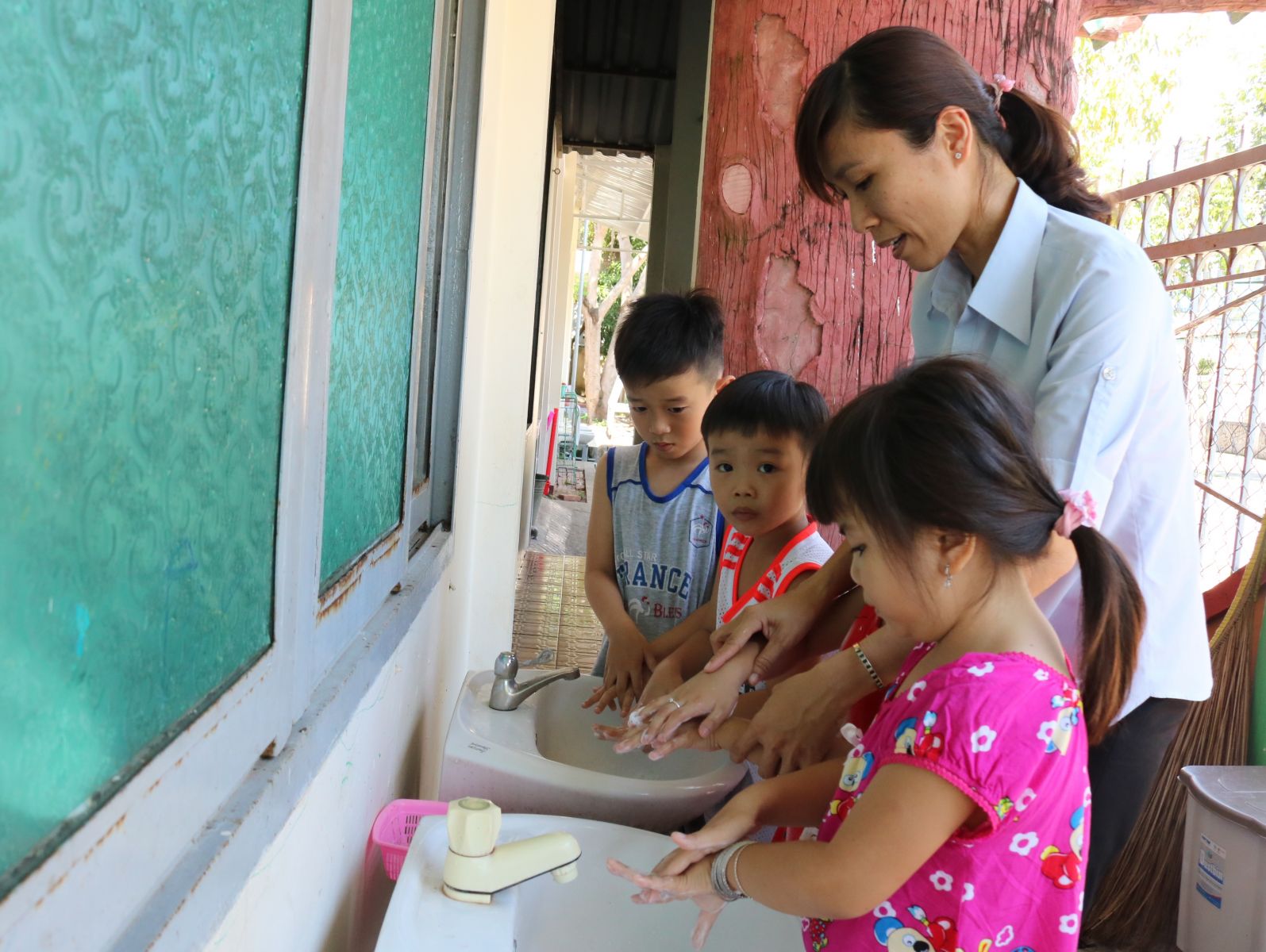 Hướng dẫn trẻ rửa tay đúng cách bằng xà phòng và nước sạch nhằm phòng tránh bệnh truyền nhiễm