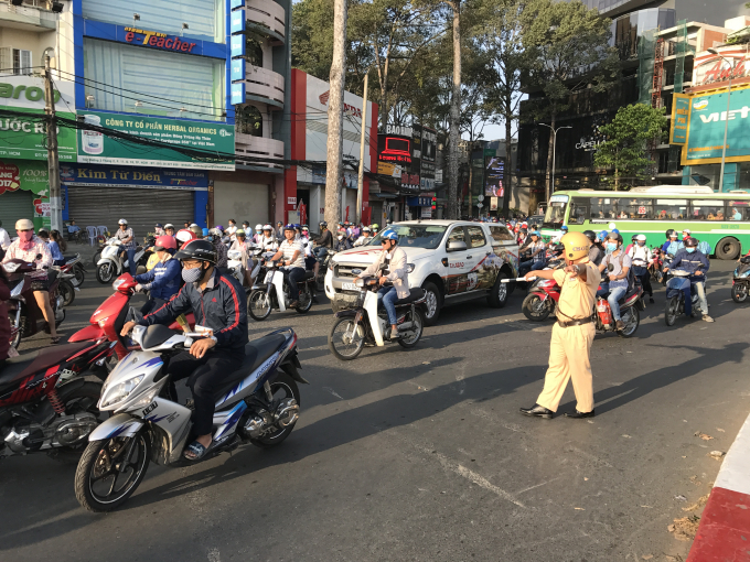 | CSGT quận Bình Tân (TP.HCM) điều tiết giao thông. |