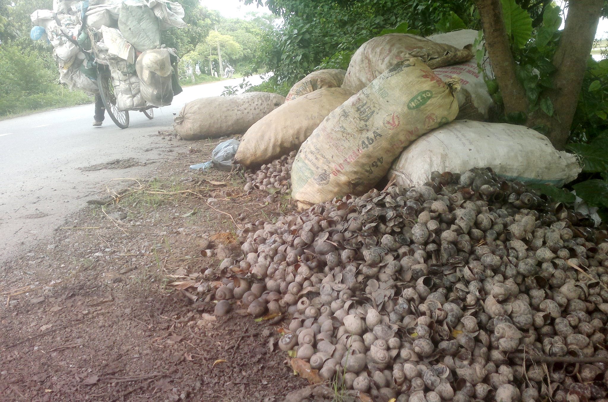 | Ốc bươu vàng được người dân Nam Định tập kết lên đường chờ chuyển đi tiêu hủy. Ảnh: TSN |