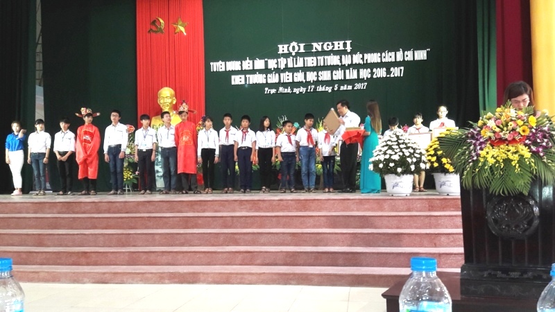 Dự hội nghị có đại biểu các ban, ngành của tỉnh Nam Định, huyện Trực Ninh và gần 300 giáo viên, học sinh có thành tích xuất sắc trong thực hiện học tập và làm theo tư tưởng, đạo đức, phong cách Hồ Chí Minh năm học 2016 - 2017.