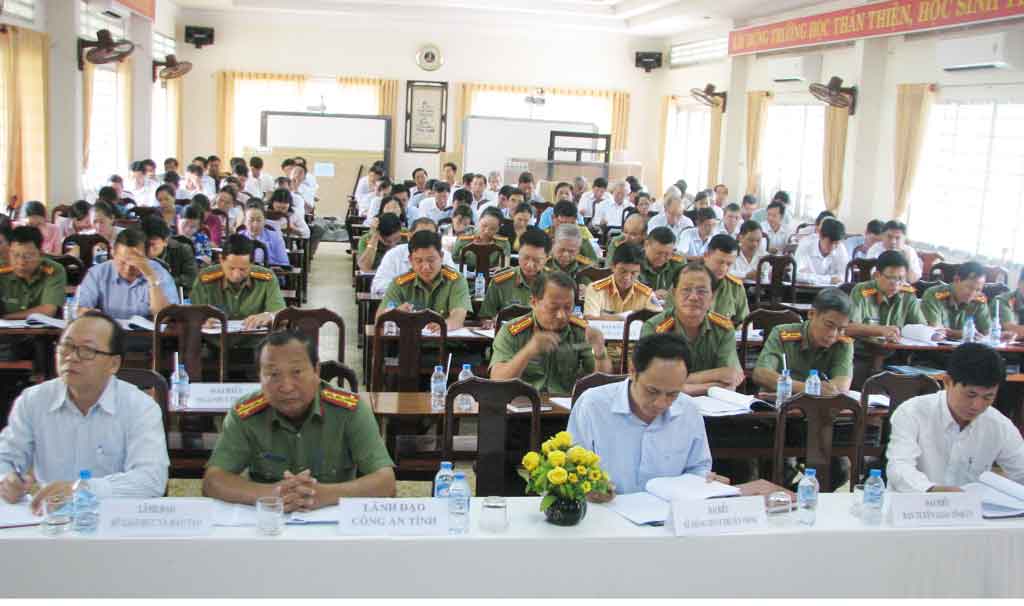 Đại biểu dự hội nghị tập trung thảo luận, đề ra một số giải pháp trong công tác ANTT trường học năm học 2017-2018 nhằm phát hiện kịp thời, đấu tranh, phòng, chống các loại tội phạm, kiên quyết không để xảy ra các vụ việc tiêu cực và tội phạm trong các nhà trường,...