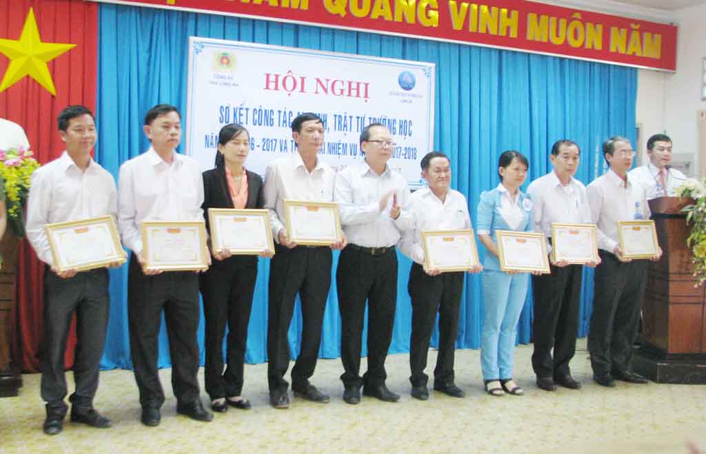 Tặng giấy khen cho tập thể, cá nhân có thành tích trong bảo vệ an ninh, trật tự trường học năm học 2016-2017