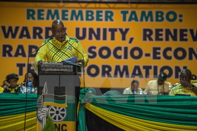 Tổng thống Nam Phi Jacob Zuma phát biểu tại Đại hội ANC ở Johannesburg ngày 16/12. (Ảnh: AFP/TTXVN)