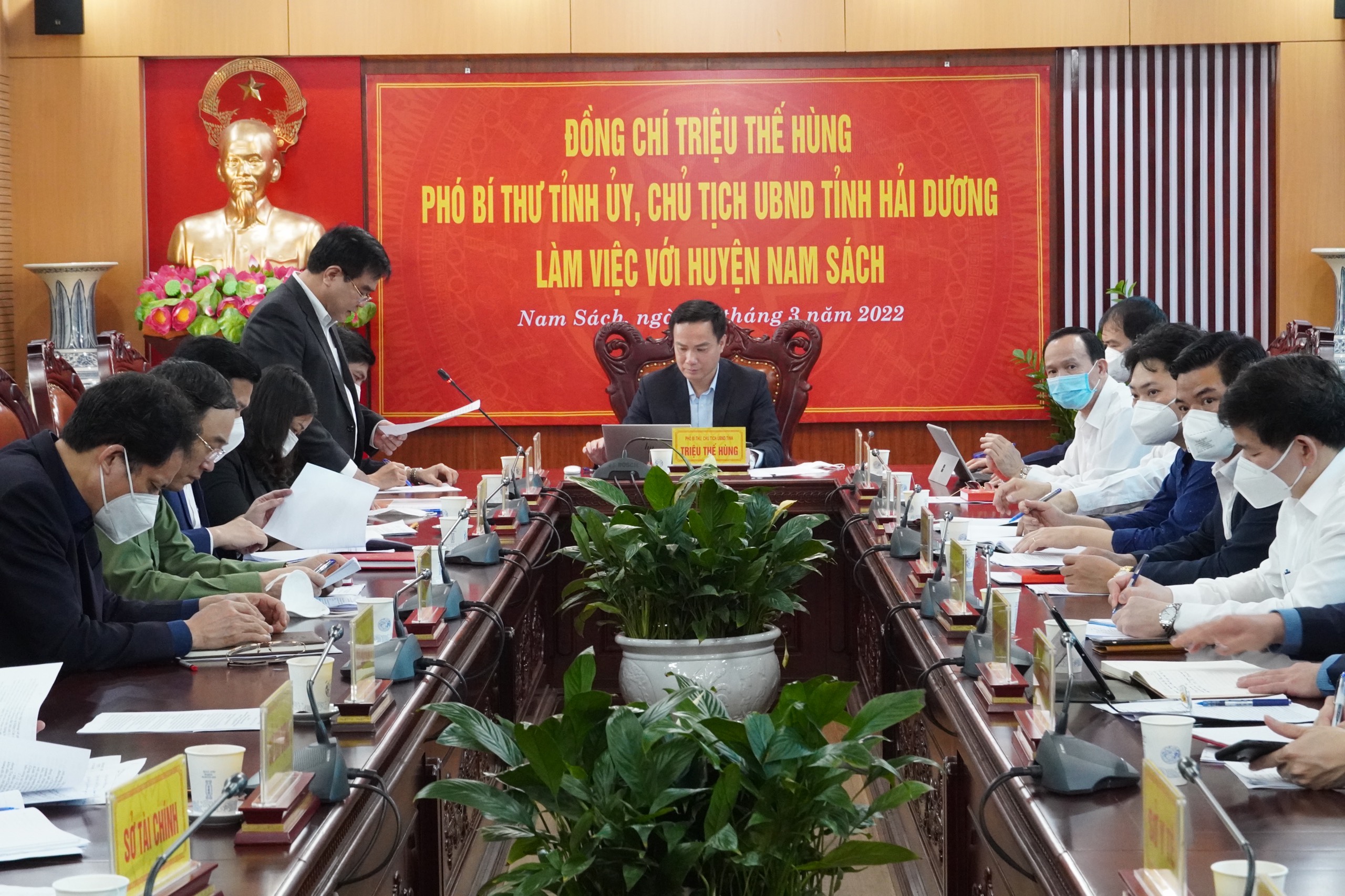 Chiều 25/3, đồng chí Triệu Thế Hùng, Phó Bí thư Tỉnh ủy, Chủ tịch UBND tỉnh Hải Dương làm việc với lãnh đạo huyện Nam Sách về kết quả thực hiện nhiệm vụ phát triển kinh tế - xã hội năm 2021 và quý I/2022; phương hướng, nhiệm vụ những tháng tiếp theo của năm 2022.