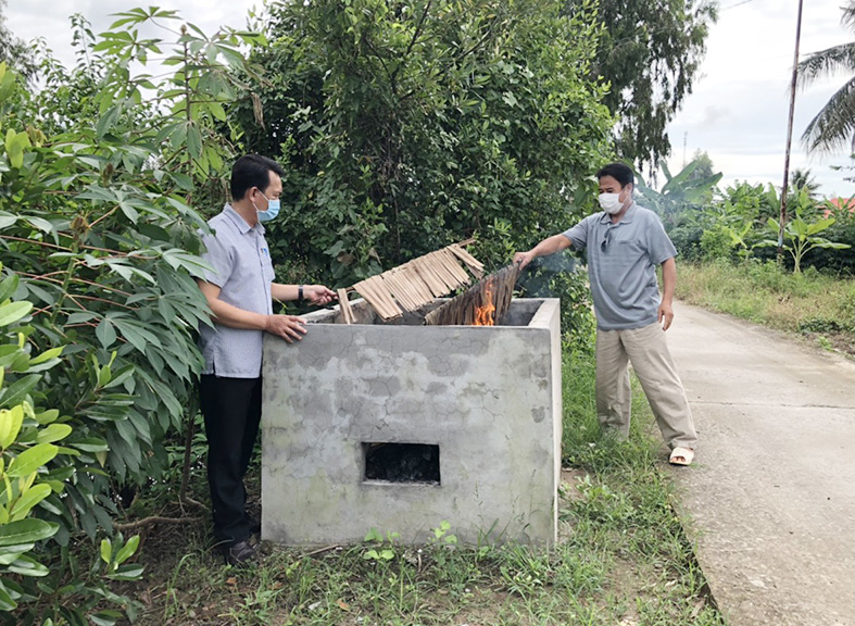 Người dân ấp Năm Biển B, xã Nam Thái (An Biên) thu gom, xử lý rác thải tại lò đốt rác công cộng góp phần bảo vệ môi trường.