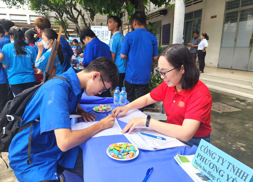 Hằng năm, Trường Cao đẳng Long An tổ chức Ngày hội giới thiệu việc làm cho HSSV. Theo đó, trường mời các DN đến phỏng vấn, tuyển dụng ngay tại trường. Sau ngày hội, đa số HSSV tốt nghiệp đều tìm được việc làm, ổn định cuộc sống.