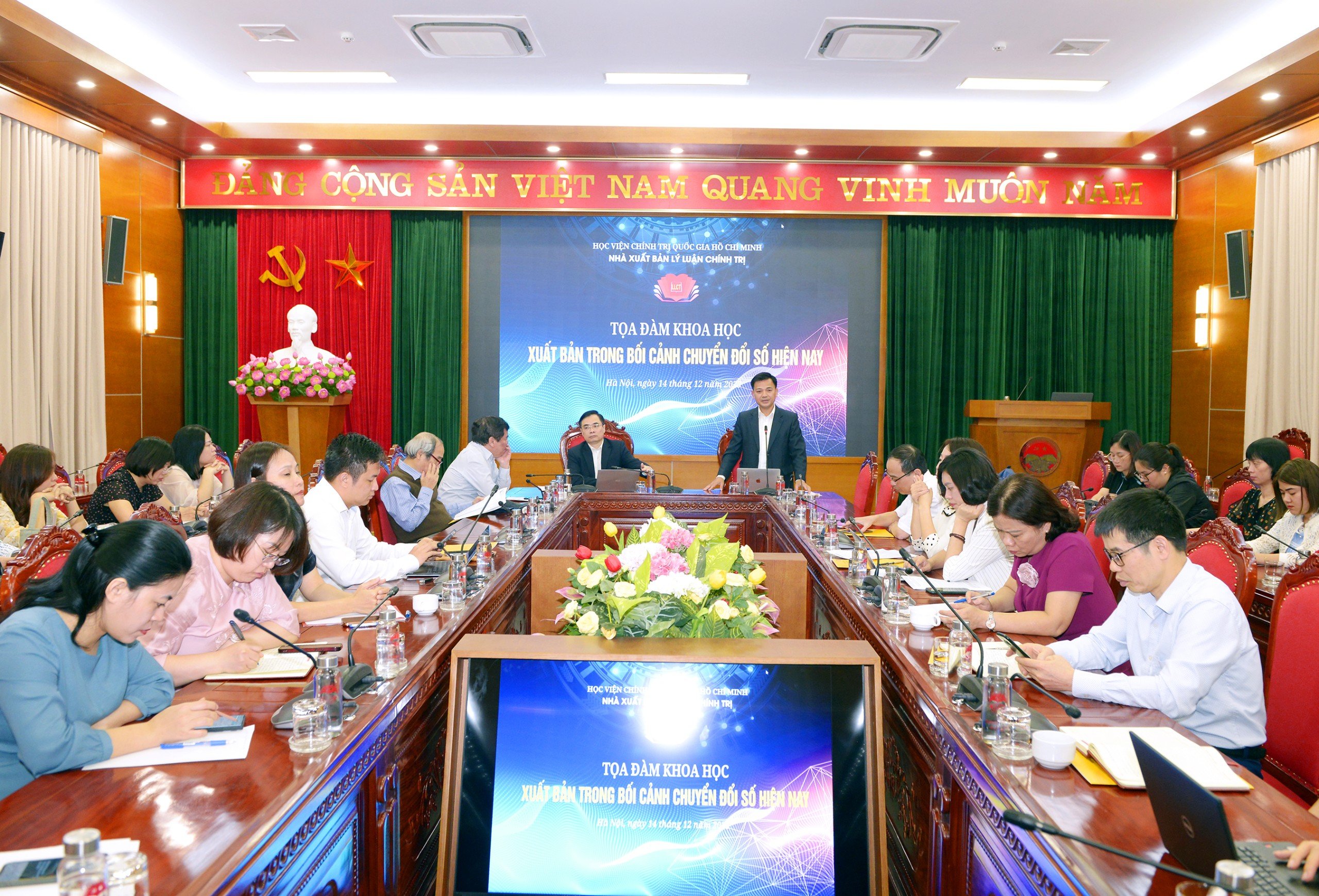 Không nằm ngoài xu thế chung của thế giới, tận dụng cơ hội của cuộc Cách mạng công nghiệp lần thứ tư, chuyển đổi số hoạt động xuất bản của Việt Nam đã từng bước diễn ra trong các khâu của hoạt động xuất bản, thể hiện rõ nhất là trong các hoạt động marketing, bán hàng trên các trang thương mại điện tử, xuất bản điện tử. Xuất bản đã có nhiều cố gắng vượt qua khó khăn, thích nghi với cơ chế thị trường và từng bước hình thành thị trường phát hành sách đa dạng, phục vụ tốt nhu cầu của độc giả. Để nhìn nhận lại quá trình chuyển đổi số này, tiếp tục đưa xuất bản trở thành một ngành công nghiệp văn hóa thực sự có chuyển biến trong bối cảnh Cách mạng công nghiệp lần thứ tư, Nhà xuất bản Lý luận chính trị tổ chức Tọa đàm khoa học “Xuất bản trong bối cảnh chuyển đổi số”. Tọa đàm vừa là sinh hoạt khoa học vừa là hoạt động trong chuỗi kỷ niệm 20 năm thành lập của Nhà xuất bản. Quá trình chuẩn bị tọa đàm rất công phu, nghiêm túc trên tinh thần khoa học cao. Ban Tổ chức đã nhận được nhiều tham luận các nhà khoa học. Các tham luận có nội dung rất phong phú và hàm chứa nhiều tri thức, nhiều kinh nghiệm hữu ích”.