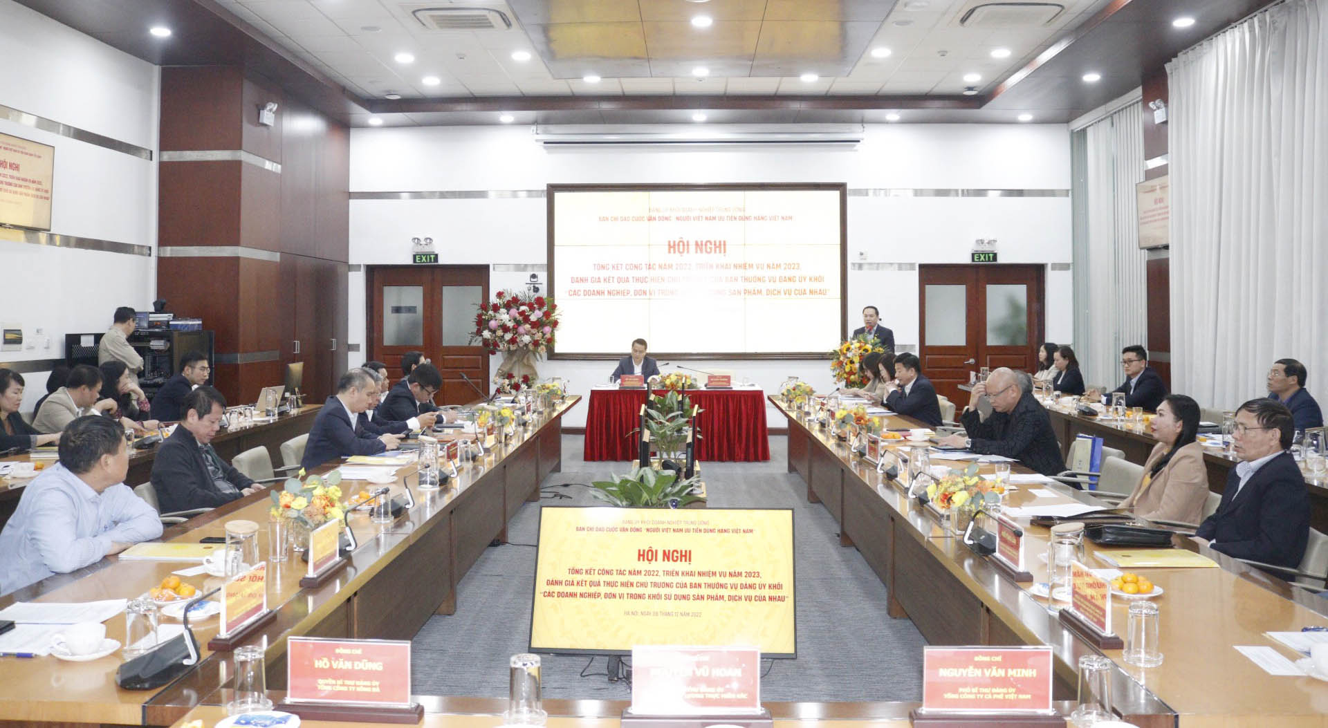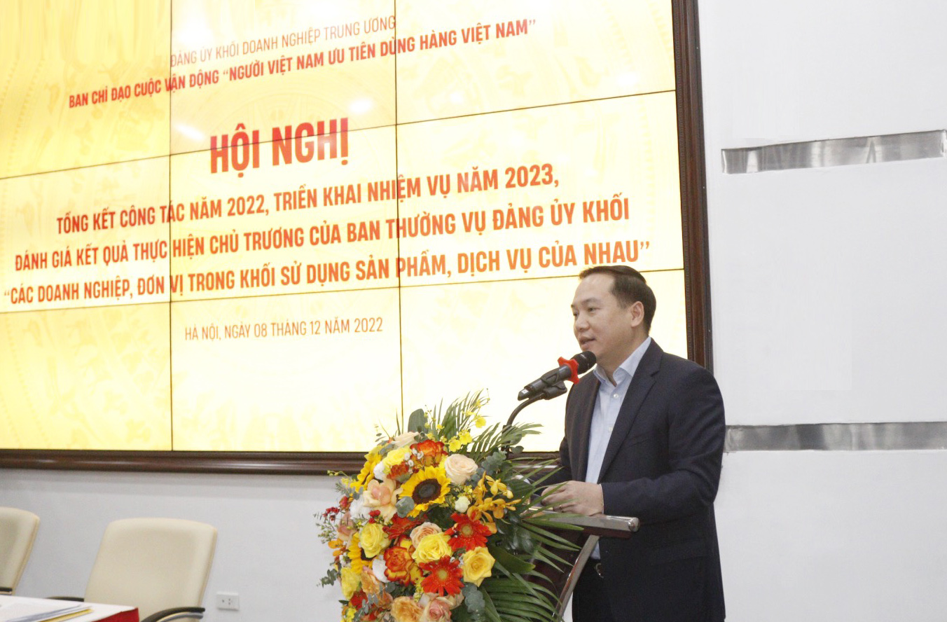 Chiều 8/12, tại Hà Nội, Ban Chỉ đạo cuộc vận động “Người Việt Nam ưu tiên dùng hàng Việt Nam” Khối Doanh nghiệp Trung ương tổ chức Hội nghị tổng kết năm 2022, triển khai nhiệm vụ năm 2023; đánh giá kết quả thực hiện chủ trương của Ban Thường vụ Đảng uỷ Khối: “Các doanh nghiệp trong Khối ưu tiên sử dụng dịch vụ sản phẩm của nhau”. Đồng chí Hồ Xuân Trường, Phó Bí thư Đảng uỷ Khối, Trưởng Ban chỉ đạo Cuộc vận động Đảng ủy Khối Doanh nghiệp Trung ương dự và chỉ đạo hội nghị.