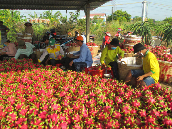 | Thu hoạch thanh long ở Long An. (Ảnh: Sơn Lâm) |