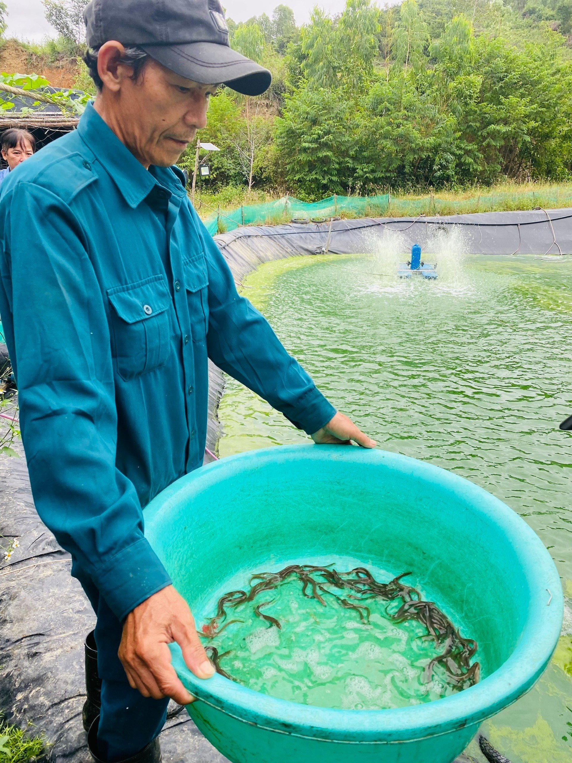 | Một trong những hộ nông dân tham gia mô hình nuôi cá chình bông tại tỉnh Phú Yên. Ảnh: TL |