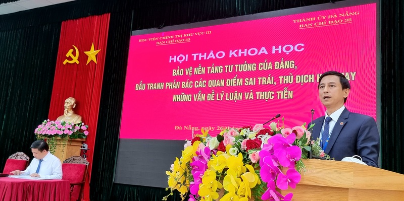 Đây là khẳng định của PGS.TS Đoàn Triệu Long, Bí thư Đảng ủy, Quyền Giám đốc, Trưởng ban Chỉ đạo 35 Học viện Chính trị khu vực III tại Hội thảo khoa học “Bảo vệ nền tảng tư tưởng của Đảng, đấu tranh phản bác các quan điểm sai trái, thù địch hiện nay- Những vấn đề lý luận thực tiễn”, do Học viện Chính trị khu vực III phối hợp với Ban Chỉ đạo 35 TP Đà Nẵng tổ chức tại Đà Nẵng ngày 26/10.