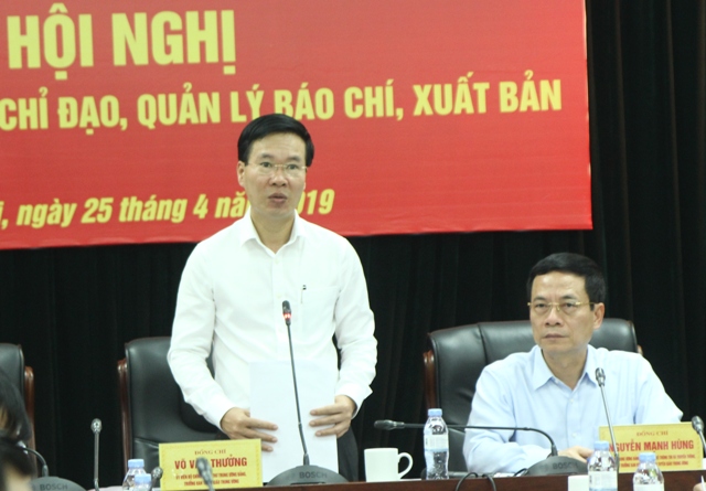 Ngày 25/4/2019, tại Hà Nội, Ban Tuyên giáo Trung ương, Bộ Thông tin và Truyền thông, Hội Nhà báo Việt Nam, Hội Xuất bản Việt Nam tổ chức Hội nghị Giao ban công tác chỉ đạo, quản lý báo chí, xuất bản. Đồng chí Võ Văn Thưởng, Ủy viên Bộ Chính trị, Bí thư Trung ương Đảng, Trưởng Ban Tuyên giáo Trung ương; đồng chí Nguyễn Mạnh Hùng, Ủy viên Trung ương Đảng, Bộ trưởng Bộ Thông tin và Truyền thông; đồng chí Lê Mạnh Hùng, Phó Trưởng Ban Tuyên giáo Trung ương chủ trì Hội nghị.