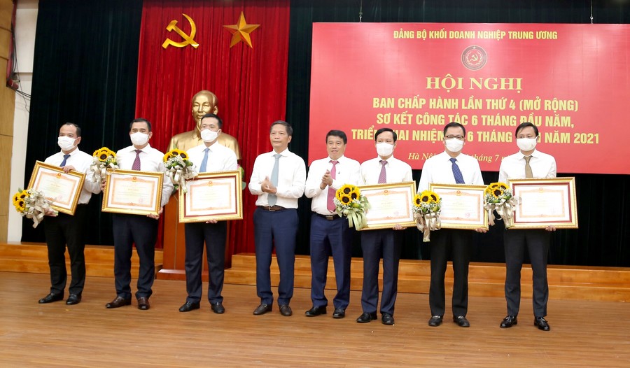 Tại Hội nghị, thừa ủy quyền của Thủ tướng Chính phủ, đồng chí Trần Tuấn Anh, Trưởng Ban Kinh tế Trung ương trao tặng Cờ thi đua của Chính phủ cho tập thể Ban Tổ chức Đảng ủy Khối Doanh nghiệp Trung ương vì đã có thành tích xuất sắc, toàn diện nhiệm vụ công tác, dẫn đầu phong trào thi đua năm 2020 của Đảng ủy Khối; trao tặng Bằng khen của Thủ tướng Chính phủ cho các tập thể và cá nhân có thành tích tiêu biểu trong học tập và làm theo tư tưởng, đạo đức, phong cách Hồ Chí Minh giai đoạn 2016 - 2021; Bằng khen của Thủ tướng Chính phủ cho các tập thể, cá nhân có thành tích trong thực hiện Phong trào thi đua “Cả nước chung tay vì người nghèo - Không để ai bị bỏ lại phía sau” giai đoạn 2016 - 2020; trao tặng Kỷ niệm chương “Vì sự nghiệp Tuyên giáo”, Kỷ niệm chương “Vì sự nghiệp Nội chính Đảng” cho các cá nhân trong Đảng bộ Khối./.