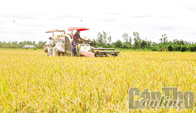 Lúa hè thu được nông dân TP Cần Thơ tập trung thu hoạch, có năng suất cao.