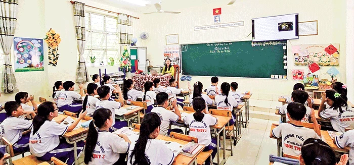 Giờ học có ứng dụng CNTT của cô trò Trường TH Bình Thủy 2.