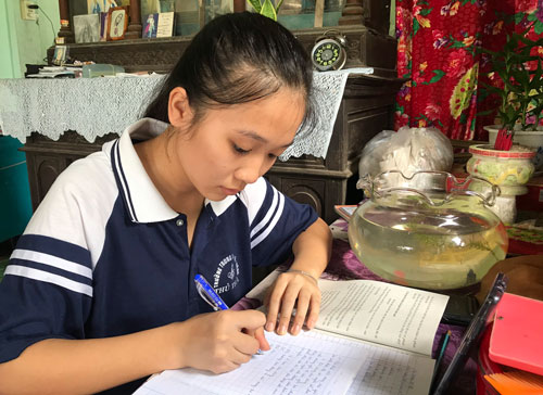 Mai Thi tâm sự: “Mỗi khi học, em đăng ký gói cước Internet theo ngày. Tất cả dung lượng có được, em dùng để phục vụ học và không lãng phí cho các hoạt động giải trí. Tuy nhiên, đôi lúc mạng yếu, hết dung lượng, việc học của em cũng bị ảnh hưởng. Những lúc như vậy, em thường hỏi lại bài thầy cô, bạn bè những phần chưa rõ; đồng thời, tự nghiên cứu, học thêm từ sách giáo khoa, tài liệu thầy cô gửi. Mặc dù gặp vài khó khăn trong quá trình học trực tuyến nhưng em vẫn có thể vượt qua được. Việc học trực tuyến cũng là giải pháp hiệu quả nhằm bảo đảm an toàn cho em và các bạn thời điểm này”.