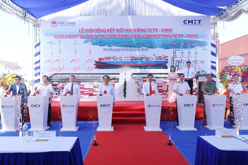 Sáng 24/5, tại thị xã Phú Mỹ, tỉnh Bà Rịa - Vũng Tàu, Cảng Tân cảng - Cái Mép - Thị Vải (TCTT) thuộc Tổng công ty Tân Cảng Sài Gòn (TCSG) và Cảng Quốc Tế Cái Mép (CMIT) đồng tổ chức Lễ mở cổng kết nối hai cảng.