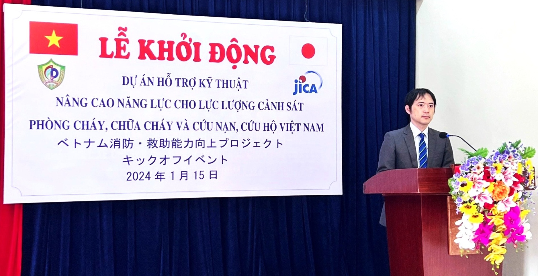 Ngày 15/1, Văn phòng Cơ quan Hợp tác Quốc tế Nhật Bản (JICA) tại Việt Nam đã phối hợp với Cục Cảnh sát phòng cháy, chữa cháy và cứu nạn, cứu hộ - Bộ Công an tổ chức Lễ khởi động Dự án Hợp tác kỹ thuật “Nâng cao năng lực cho lực lượng cảnh sát phòng cháy, chữa cháy và cứu nạn, cứu hộ Việt Nam”.