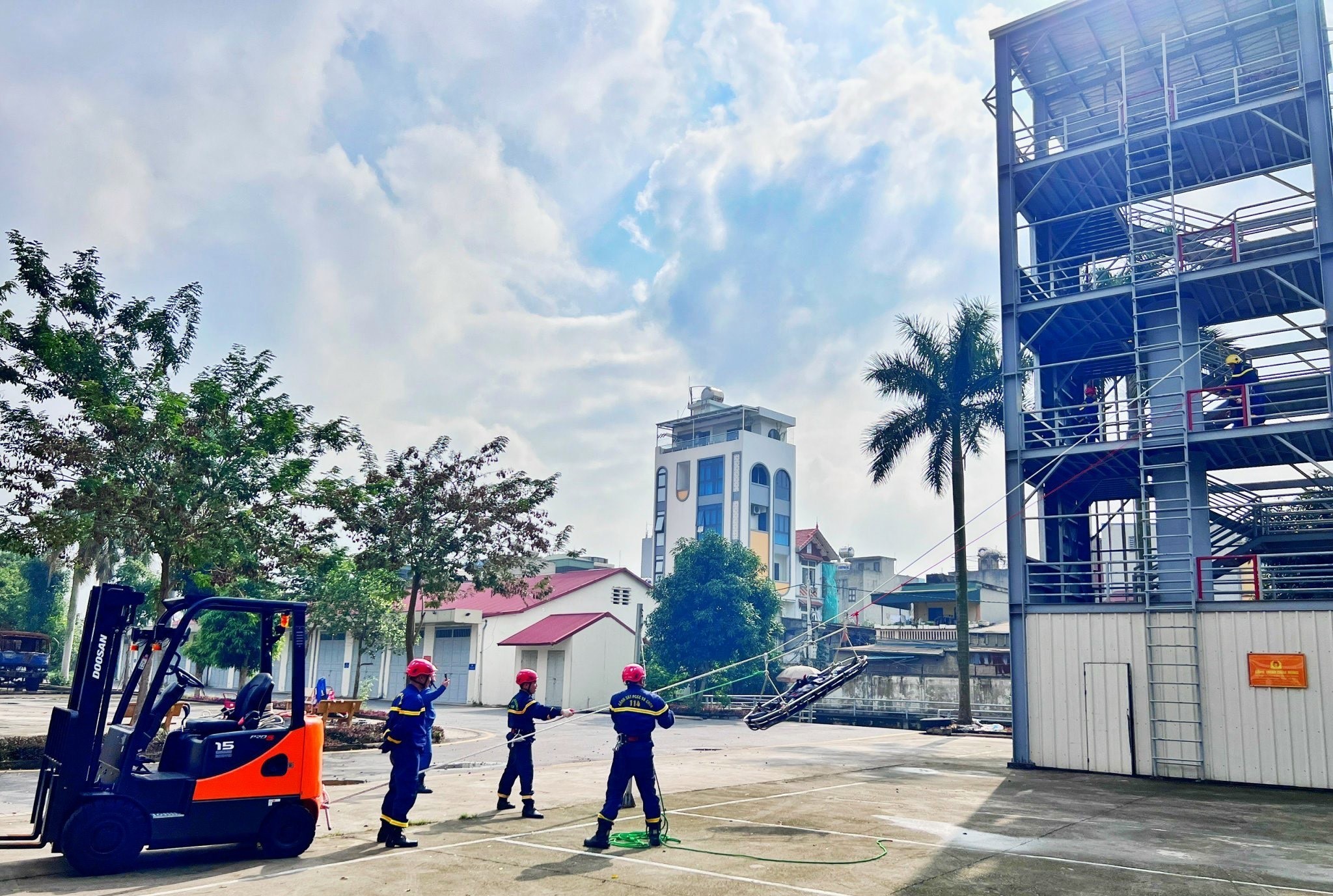 | Thao diễn cứu hộ người từ trên cao (Ảnh: Q.A) |