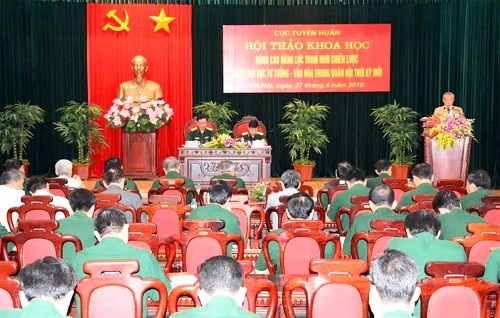 Phát biểu tại hội thảo, Thiếu tướng Trần Hoài Trung, Cục trưởng Cục Tuyên huấn nhấn mạnh, nâng cao năng lực tham mưu chiến lược trên lĩnh vực tư tưởng, văn hóa trong Quân đội là nhiệm vụ quan trọng. Công tác tư tưởng -văn hóa trong quân đội phải luôn quán triệt sâu sắc đường lối chính trị, quân sự của Đảng, nhiệm vụ bảo vệ Tổ quốc trong tình hình mới; xác định đúng phương hướng, nhiệm vụ trọng tâm, tập trung giải quyết những vấn đề quan trọng, cấp bách trong thực tiễn.