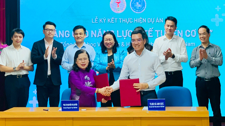 | PGS. TS. Nguyễn Thị Xuyên, Chủ tịch Tổng hội Y học Việt Nam và TS. Hà Anh Đức, Chủ tịch Hội Thầy thuốc trẻ Việt Nam, Chánh văn phòng Bộ Y tế ký kết hợp tác triển khai chương trình “Nâng cao năng lực y tế tuyến cơ sở” |
