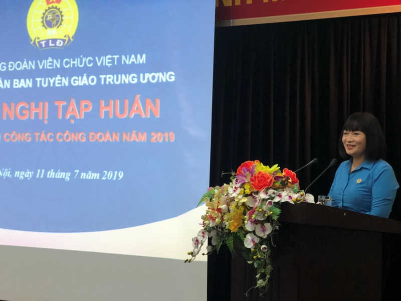 Thực hiện chương trình công tác năm 2019, ngày 11/7, tại Hà Nội, được sự đồng ý của lãnh đạo Ban Tuyên giáo Trung ương, Công đoàn Ban Tuyên giáo Trung ương tổ chức Hội nghị tập huấn nghiệp vụ cho các cán bộ làm công tác Công đoàn. Dự Hội nghị có đồng chí Nguyễn Giang Tuệ Minh, Phó Chủ tịch Thường trực Công đoàn Viên chức Việt Nam; đồng chí Trần Doãn Tiến, Chủ tịch Công đoàn cơ quan Ban Tuyên giáo Trung ương, Tổng biên tập Báo điện tử Đảng Cộng sản Việt Nam.