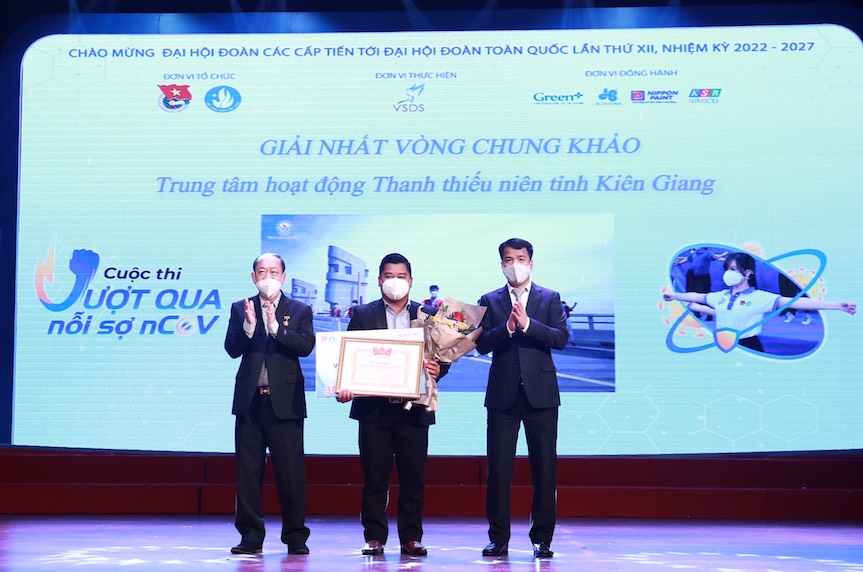 | Trao giải Nhất cuộc thi “Vượt qua nỗi sợ nCoV” cho Trung tâm hoạt động Thanh thiếu niên tỉnh Kiên Giang. |