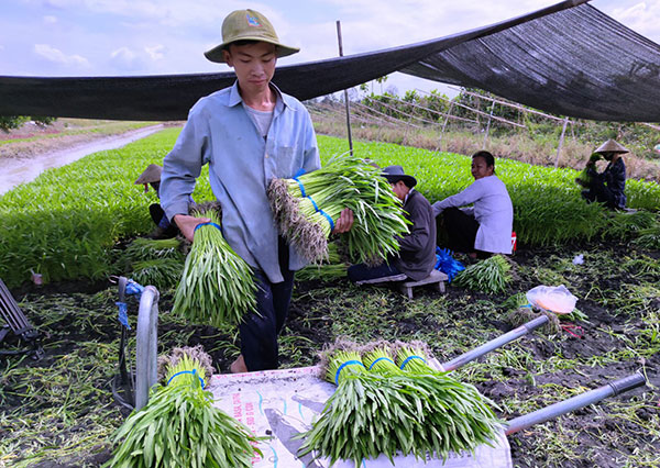 Trồng rau muống tại Hợp tác xã Rau an toàn Hòa Phát, quận Ô Môn.