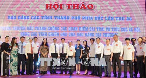 Cũng tại hội thảo, đại diện 27 cơ quan báo Đảng các tỉnh, thành phố phía Bắc đã chia sẻ kinh nghiệm, cách làm hay trong công tác tuyên truyền; nêu bật vai trò, trách nhiệm của báo chí trong việc tuyên truyền đấu tranh chống các quan điểm sai trái, phê phán âm mưu thủ đoạn của các thế lực thù địch. Theo đó, báo Đảng địa phương đã tập trung tuyên truyền đấu tranh phản bác thông tin, quan điểm sai trái, thù địch của các thế lực thù địch, góp phần giữ vững định hướng tư tưởng, nâng cao cảnh giác cách mạng, củng cố niềm tin trong cán bộ, đảng viên, nhân dân vào sự lãnh đạo của Đảng, tạo sự đồng thuận trong xã hội.