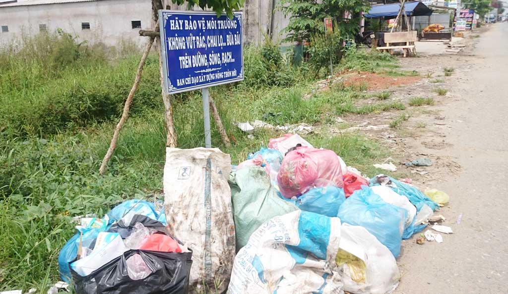 Rác thải tại xã văn hóa, xã nông thôn mới Long Trạch, huyện Cần Đước