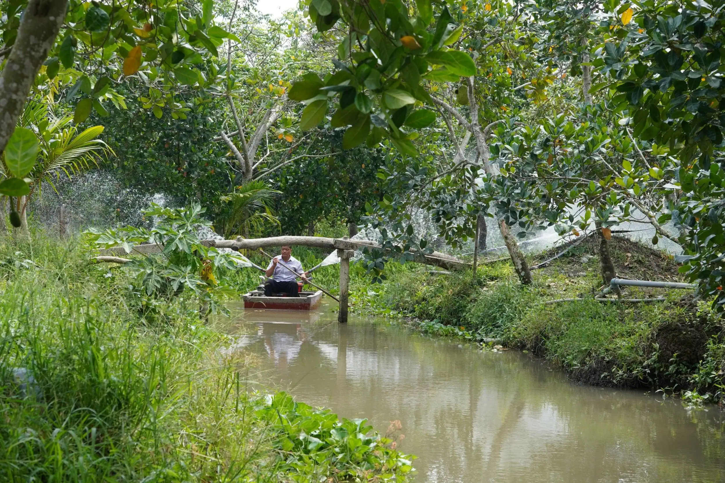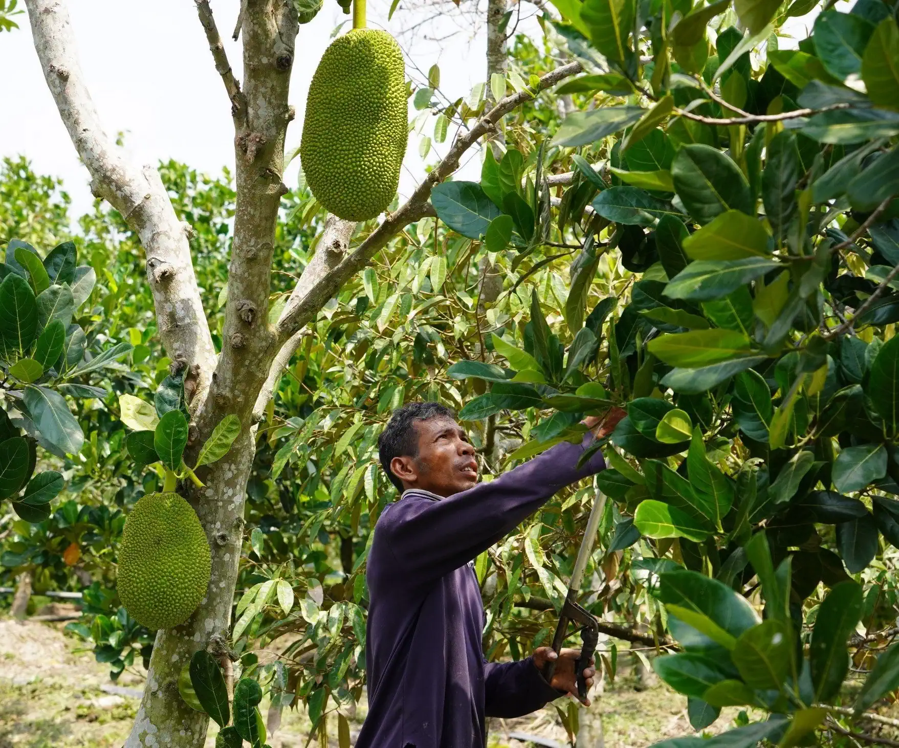 Anh Nguyễn Hữu Tấn chăm sóc vườn mít Thái.