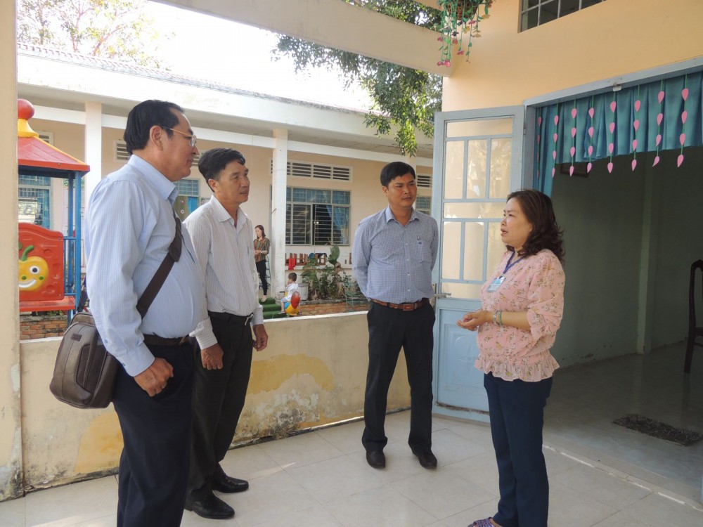 Đoàn giám sát XD NTM thành phố khảo sát tại Trường Mầm non Nhơn Ái, huyện Phong Điền.