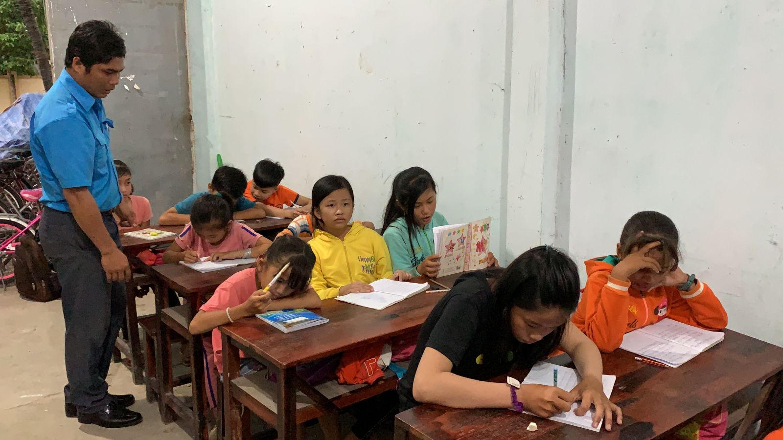 Anh Trương Văn Thùy trực tiếp giảng dạy cho hàng chục em biết đọc, biết viết