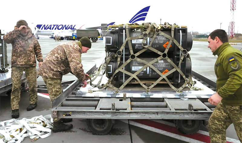 Vũ khí Mỹ viện trợ cho Ukraine. Ảnh: AP