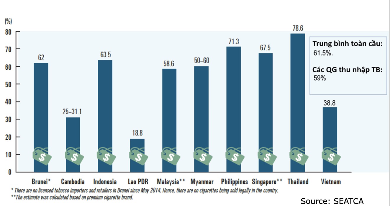 Theo các chuyên gia, thuế thuốc lá ở Việt Nam đang rất thấp so với các nước ASEAN và trung bình toàn cầu. Trong khi thuế tiêu thụ đặc biệt trên giá bán lẻ của Việt Nam là 38,8%, thì theo khuyến cáo của Tổ chức Y tế thế giới (WHO), để giảm nhu cầu sử dụng thuốc lá, cần đạt mức 70-75%.