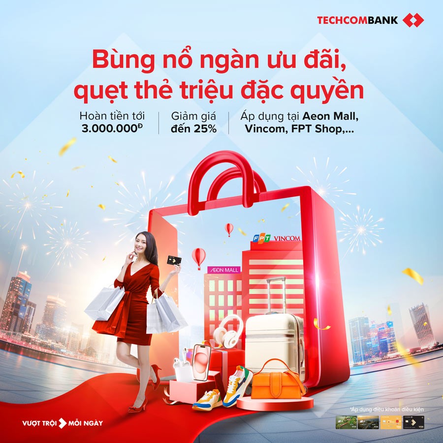 Lưu ý: Mỗi loại thẻ sẽ có chương trình ưu đãi riêng, bạn đọc nên truy cập website techcombank.com để cập nhật ưu đãi mới nhất.