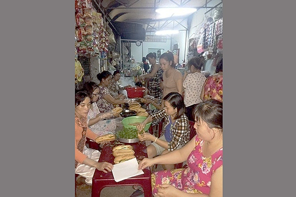 Bà Nguyễn Ngọc Phương, 52 tuổi, kể: “Từ lúc chế biến thức ăn chay đến khi hoàn tất công đoạn cuối cùng, lúc nào cũng có khoảng mười mấy người cùng làm. Vui lắm! Nói chung là tất cả đều hết lòng vì việc thiện”.