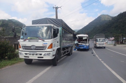 Xe tải do anh Bắc lái và chiếc xe khách sau khi đã dừng lại an toàn. Ảnh: Tuổi trẻ