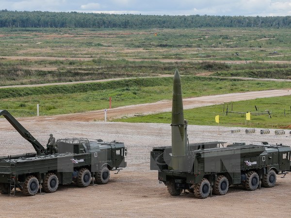Tên lửa chiến thuật Iskander-M của quân đội Nga trong cuộc diễn tập tại Kubinka, Nga, ngày 9/9. (Nguồn: EPA/TTXVN)