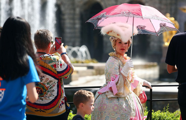 Một người mẫu Nga mặc trang phục lịch sử trước lâu đài Peterhof danh tiếng do Peter Đại đế cho xây dựng vào năm 1710 ở TP St. Petersburg - Ảnh: Reuters