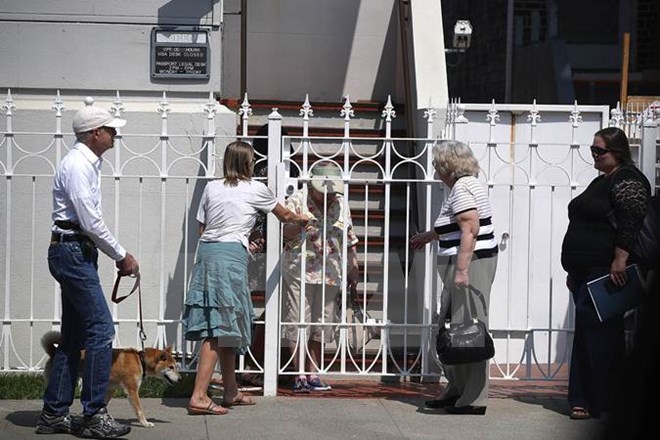 Quang cảnh bên ngoài Tổng lãnh sự quán Nga tại San Francisco, Mỹ ngày 01/9. (Nguồn: AFP/TTXVN)