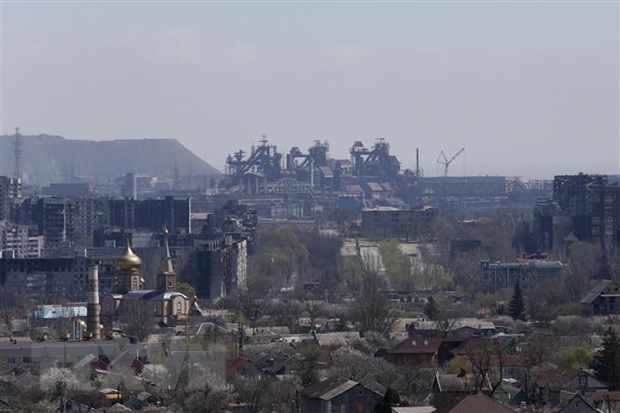 Nhà máy thép Azovstal ở Mariupol, Ukraine. (Ảnh: THX/TTXVN)