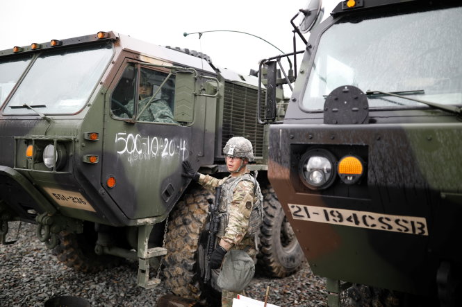 Binh sĩ Mỹ đang tập trận tại Pohang (Hàn Quốc) ngày 11/4 - Ảnh: Reuters