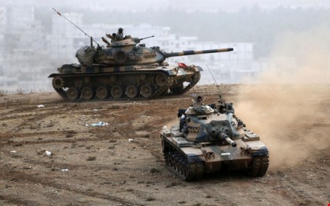 Hành động đưa xe tăng và binh sĩ sang Iraq của Thổ Nhĩ Kỳ được cho là nhằm đẩy căng thẳng Nga- Thổ Nhĩ Kỳ đến mức không thể chấp nhận được để Thổ Nhĩ Kỳ nhân đó tìm cách chặn đường tàu Hải quân Nga đi qua eo biển nước này đến Syria. Ảnh AP