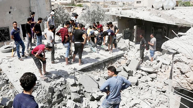Nhiều tòa nhà bị phá hủy do xung đột tại tỉnh Ít-líp, Xy-ri.