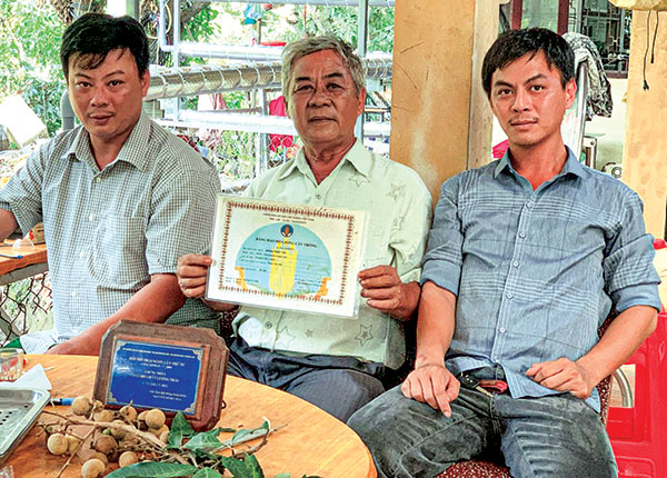 Ông Út Hiện và các con tập trung đổi mới nông trại để mở rộng hợp tác nông trại trồng nhãn Phát Tài - được Nhà nước bảo hộ giống cây trồng.