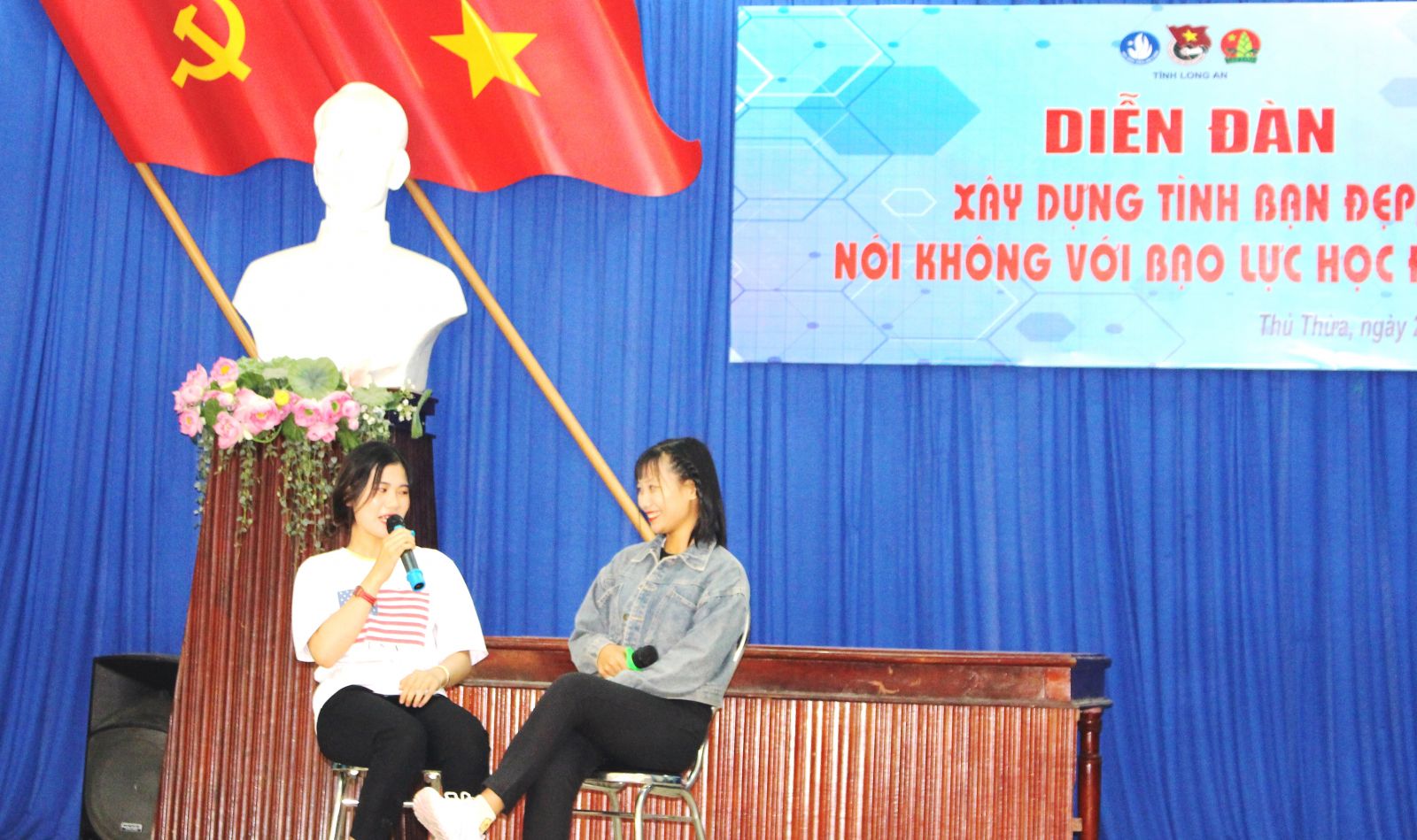 “Đoàn Thanh niên thường xuyên phối hợp giáo viên chủ nhiệm, đội ngũ quản sinh tăng cường giám sát, thu thập thông tin nhằm phát hiện kịp thời học sinh có hành vi gây gổ, có nguy cơ gây BLHĐ. Đặc biệt, thời gian qua, Đoàn Thanh niên duy trì phối hợp tổ chức tuyên truyền góp phần ngăn chặn, loại bỏ nguy cơ xảy ra bạo lực trong trường học thông qua hình thức sân khấu hóa, biểu diễn tiểu phẩm, hùng biện dưới cờ, hái hoa dân chủ,...” - Bí thư Đoàn trường THPT Đông Thạnh (xã Đông Thạnh, huyện Cần Giuộc) - Huỳnh Trung Hiếu chia sẻ.