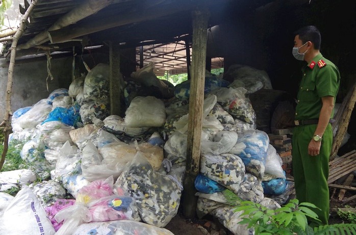 Mới đây, ngày 8/6, khi kiểm tra đột xuất cơ sở thu mua nhựa tái chế của ông Vũ Văn Hưng, trú tại xóm Kê, xã Tân Khánh (huyện Phú Bình, tỉnh Thái Nguyên), lực lượng chức năng đã phát hiện nhiều bao tải, túi nylon đựng găng tay làm bằng nhựa, cao su đã qua sử dụng. Tổng khối lượng rác thải trên 13,5 tấn. Trong đó, 6.470kg găng tay đã qua sử dụng chưa được phân loại và 3.130kg các đầu bao tay của găng tay đã qua sử dụng... Qua điều tra, cơ quan Công an xác định, số găng tay rác thải này được chủ cơ sở mua lại của Vũ Thị Thu Hương, trú tại xã Tiền Phong (huyện Mê Linh, Hà Nội).