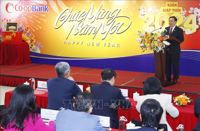 Phát biểu tại đây, Chủ tịch Quốc hội Vương Đình Huệ thay mặt lãnh đạo Đảng, Nhà nước, Ủy ban Thường vụ Quốc hội gửi lời chúc mừng năm mới tốt đẹp và tình cảm thân ái đến toàn thể cán bộ, nhân viên, người lao động Ngân hàng Hợp tác xã Việt Nam.