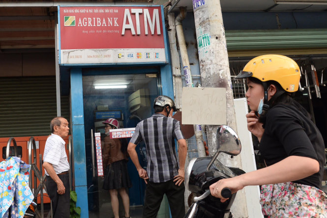 Người dân rút tiền tại trụ ATM Agribank trên đường Nơ Trang Long, Q.Bình Thạnh, TP.HCM chiều 5/5. Ảnh: TỰ TRUNG